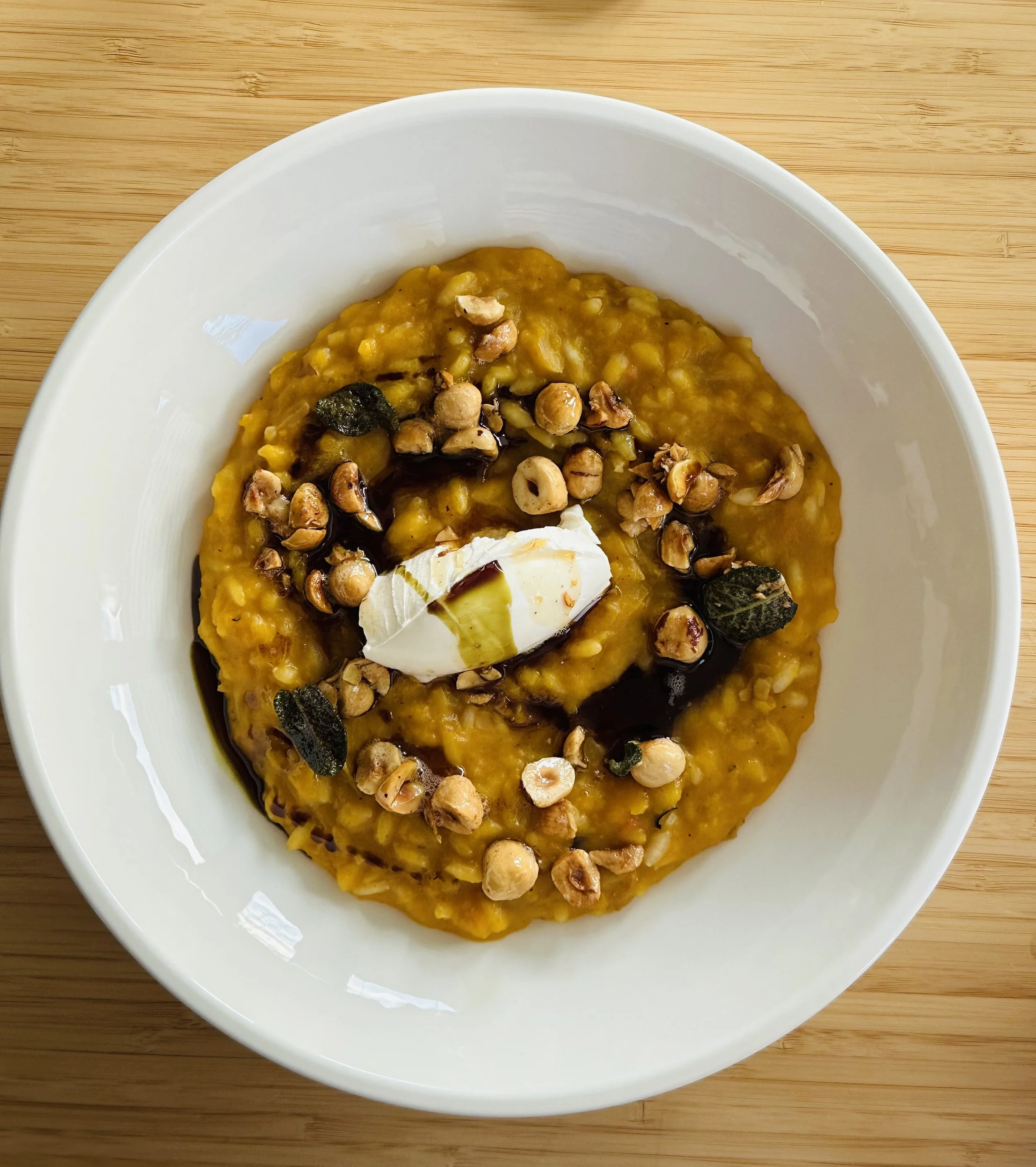 Brown butter. Hazelnut crunch. Crispy Sage. Dollop of Mascarpone.