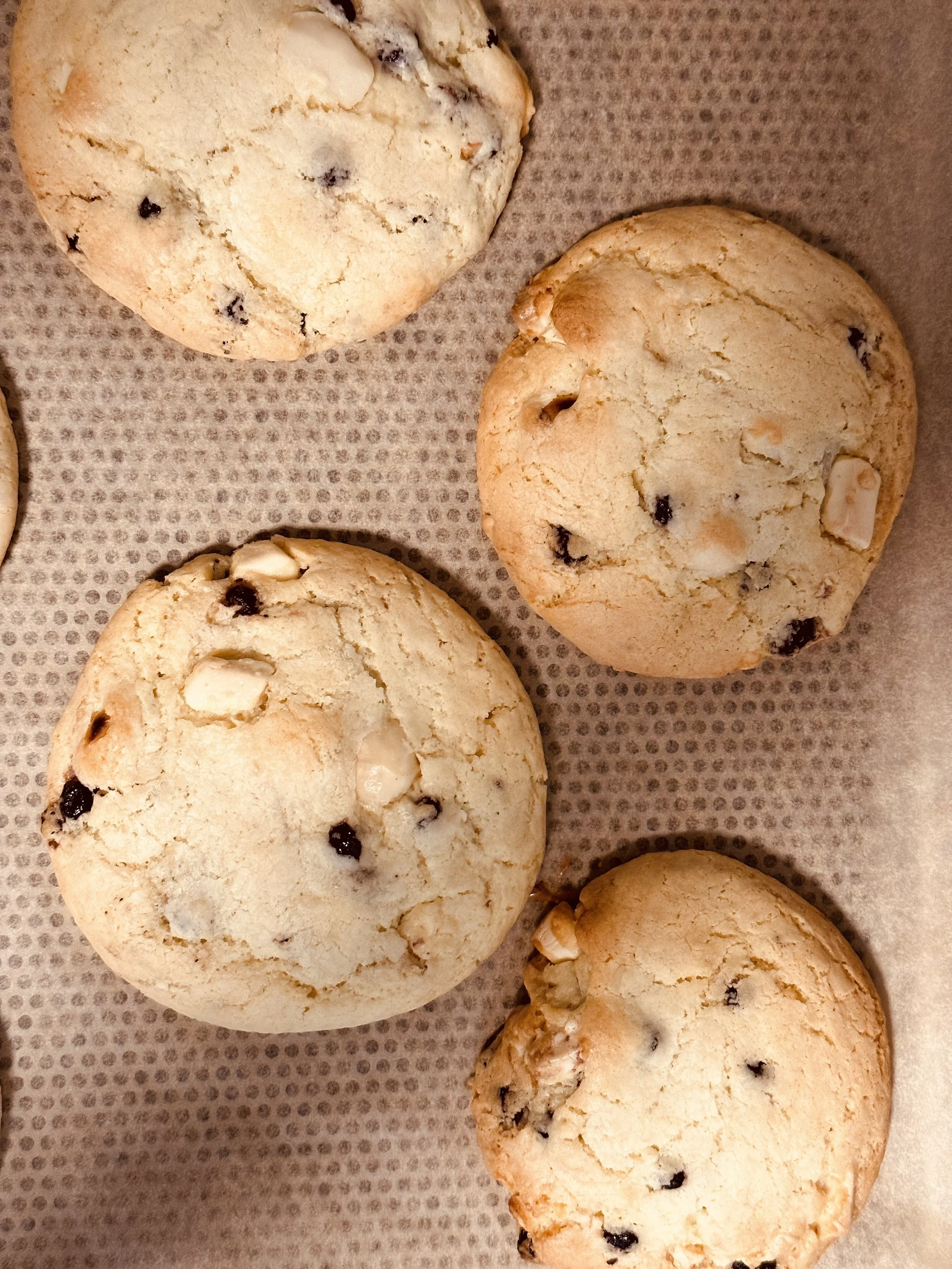 Alas, the pandemic ended, Fabiana moved on to collaborate on a real bakery (and make it an incredible success) and I moved more than 200 kms away from her delicious cookies. One of my favourites at the time was a white chocolate, macadamia nut and dried blueberry concoction that was incredibly moreish and delicious.